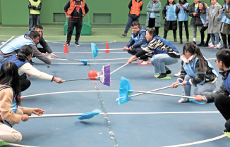 本屆運動(dòng)會(huì )除了“觀(guān)山長(cháng)跑”,還設立了“接力五子棋”、“山寨曲棍球”、“高蹺接力往返跑”、“乒乓球運送”等項目?!敖恿ξ遄悠濉本o張、“山寨曲棍球”激烈、“高蹺接力往返跑”熱鬧、“乒乓球運送”刺激。身處賽場(chǎng),哪怕你是站在一旁的拉拉隊、裁判,也會(huì )融入這熱烈的氛圍當中,看著(zhù)運動(dòng)員們認真努力、奮力拼博的姿態(tài),你也會(huì )動(dòng)容。有人臉上掛著(zhù)不輸給專(zhuān)業(yè)運動(dòng)員的認真神情,有人緊張得攥緊了一對小拳頭,有人聲嘶力竭的為運動(dòng)員加油,有人為順利抵達終點(diǎn)的隊員歡呼雀躍……