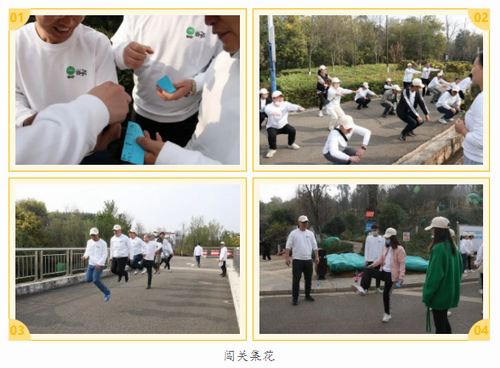 闖關(guān)集花——共設置4個(gè)關(guān)卡。關(guān)卡1:石頭剪刀布(闖關(guān)人員和守關(guān)者PK,一拳定輸贏(yíng),勝利者守關(guān)人戳一枚印花,敗者繼續)。關(guān)卡2:連續下蹲15個(gè),得一枚印花。關(guān)卡3:協(xié)作跳繩(自行組隊10人,一同跳長(cháng)繩,2人搖繩,其余8人連續跳過(guò)10個(gè)闖關(guān)成功,整組人各得一枚印花)。關(guān)卡4:踢毽子(單人連續踢5個(gè)以上;多人組合要求人數5人以上,每人至少踢1個(gè),闖關(guān)成功)。